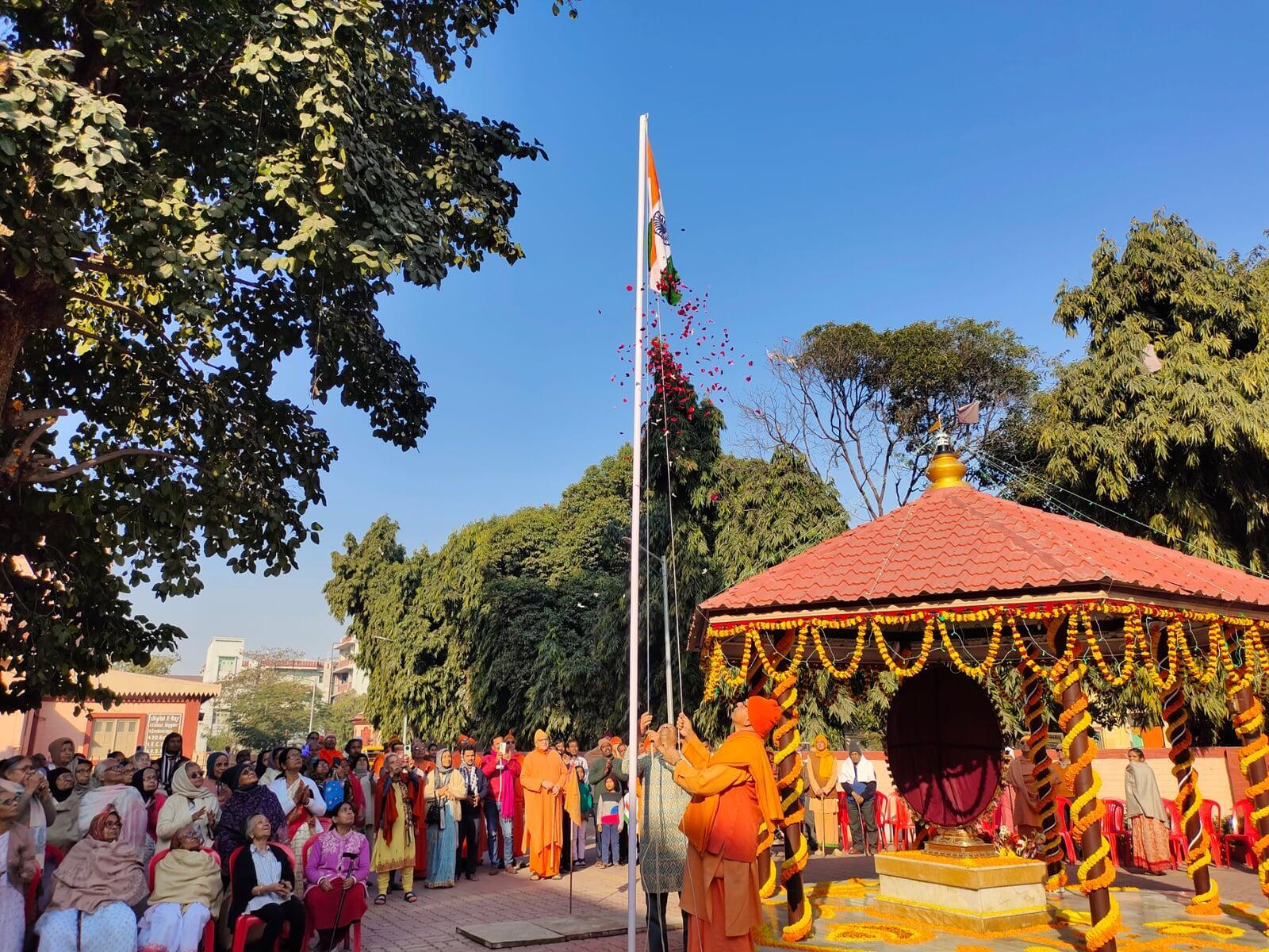 The 78th Independence Day was celebrated with great enthusiasm. Revered Swami Brahmeshanandaji Maharaj, a very senior monk of the order, hoisted the National Flag and delivered a short speech. Singing of National Anthem followed. Large number of monks, doctors, staff and students and others joined the celebration.