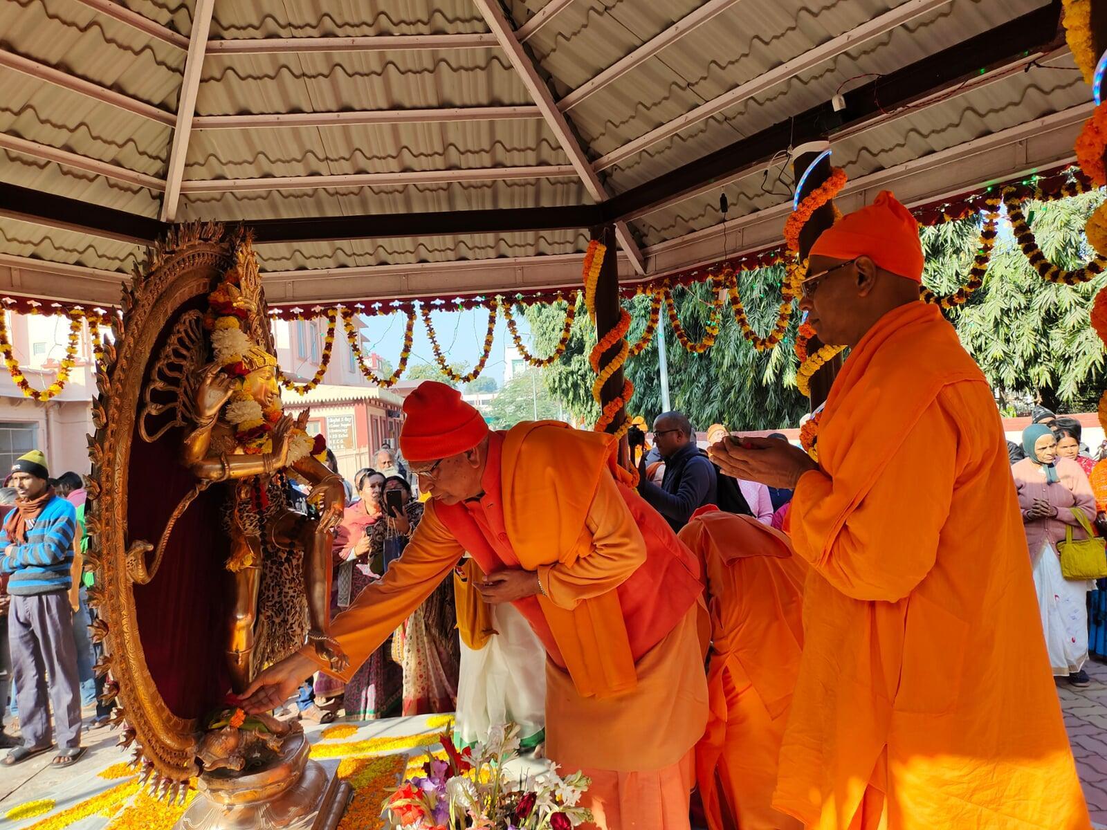 On the occasion of Consecration of Sri Rama Mandir at Ayodhya on 22nd January, 2024, a Special Puja of Bhagawan Sri Ramchandra and Sri Ramnam Sankirtan was performed in our centre. Monks, all categories of Staff and Students, Devotees, Inmates participated in the programme. In the evening our Temple, Statue of Swamiji and Natraj were illuminated.