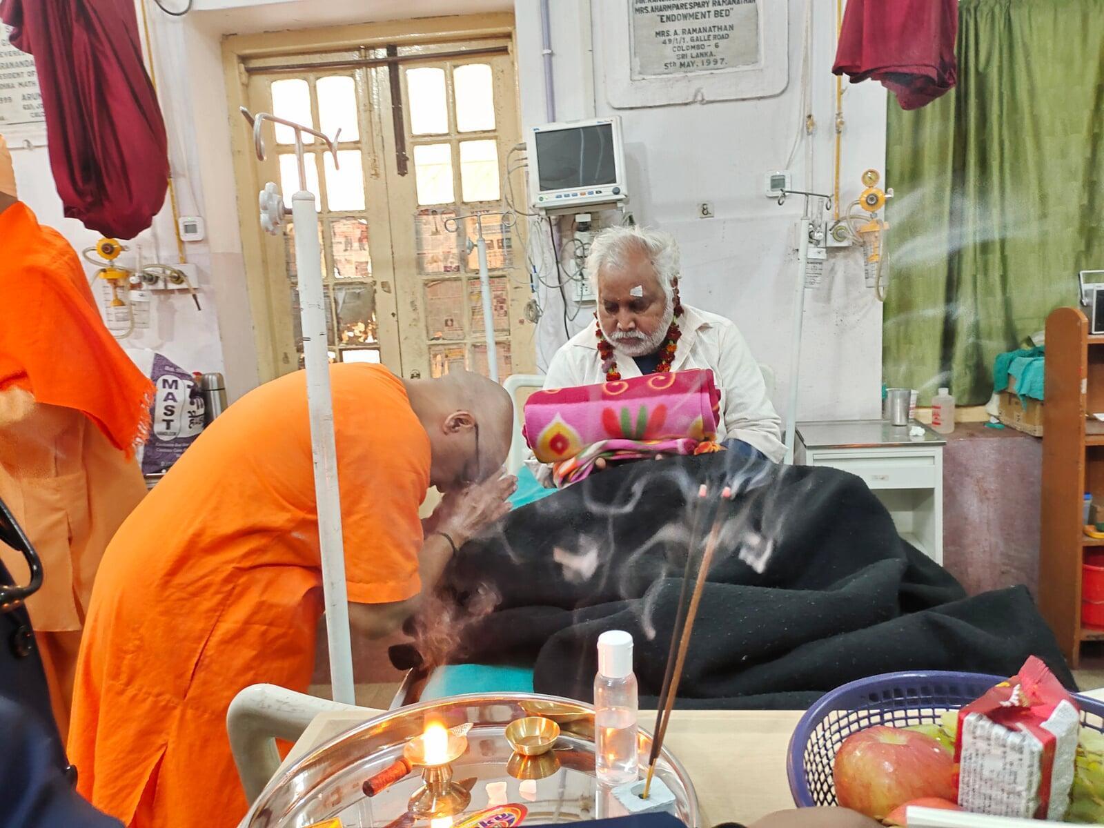 Annual Swami Vivekananda's Birth Anniversary (Narayan Puja) was performed in Sevashrama on 26th January 2025 with special puja at Swamiji’s temple and Rogi Narayan Puja in the Hospital. All the inpatients were ceremoniously worshipped and were offered Woollen Blankets, Books on Swamiji, Fruits etc. Lunch Prasad was served to doctors, well-wishers and others. Nearly 3,000 people took Prasad.